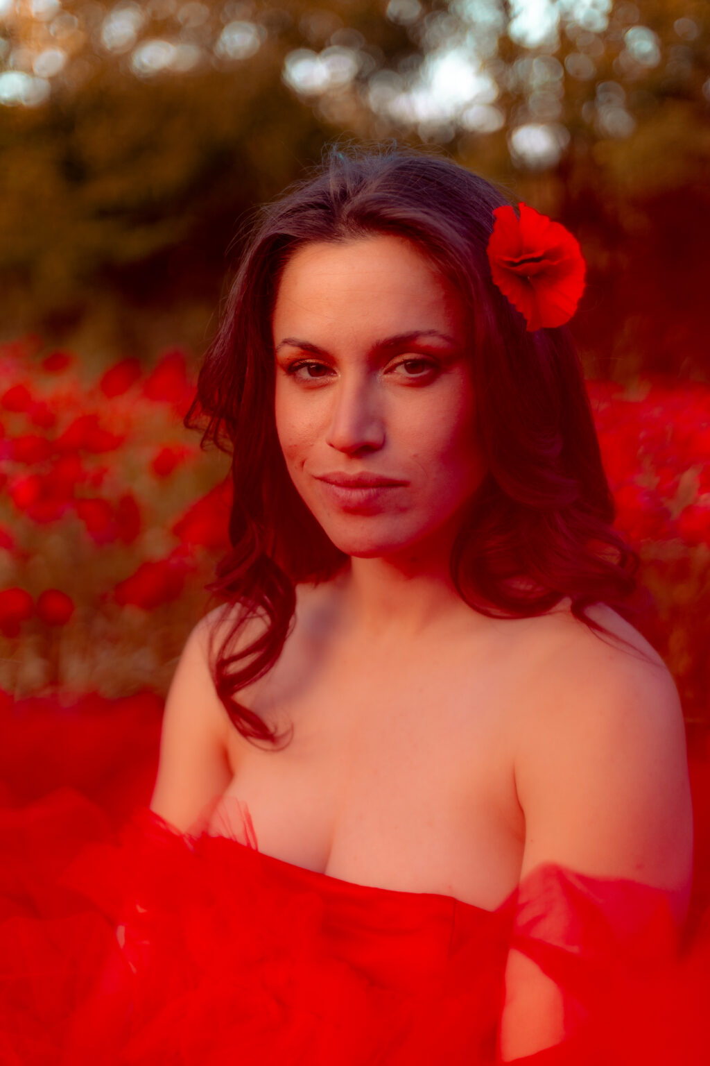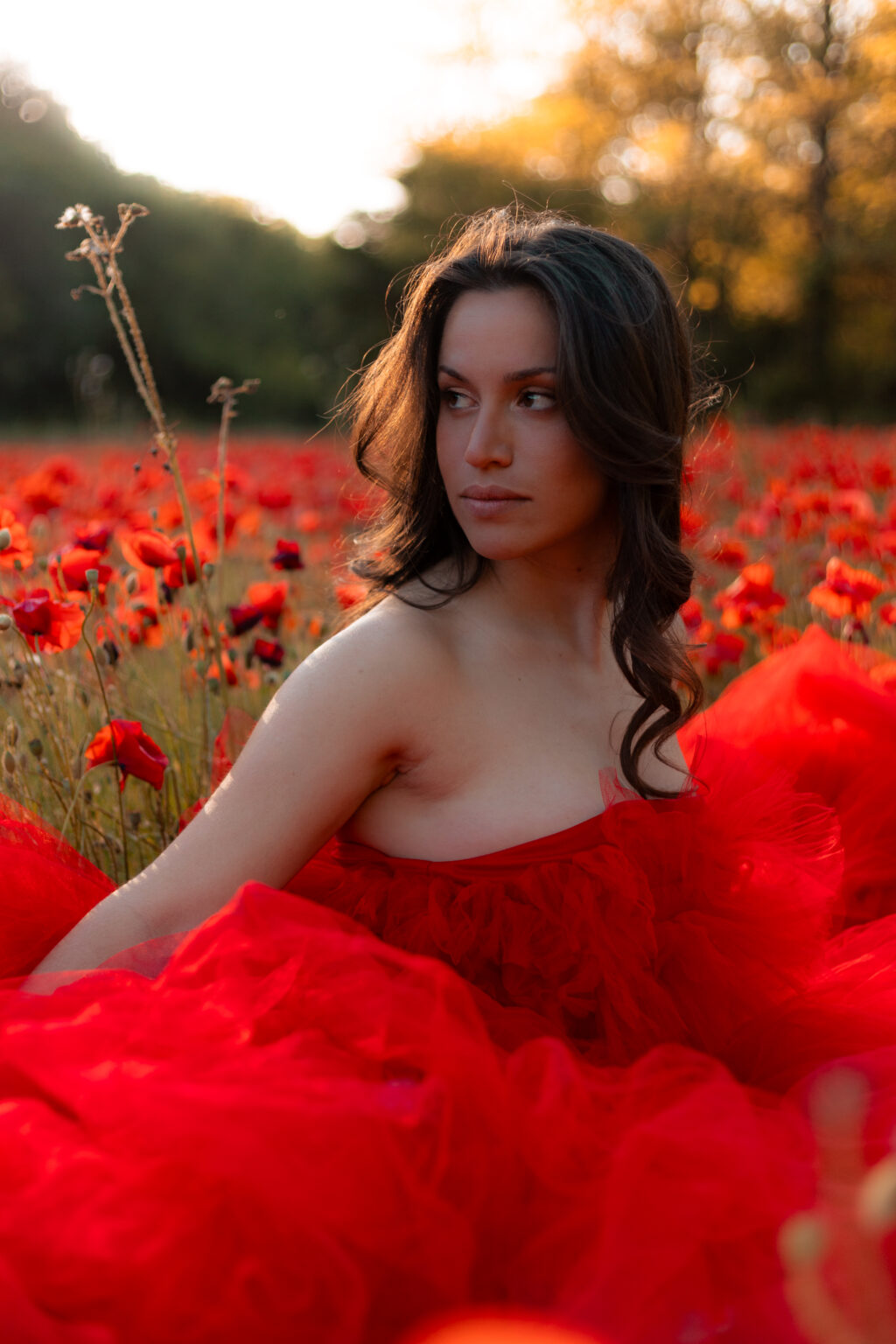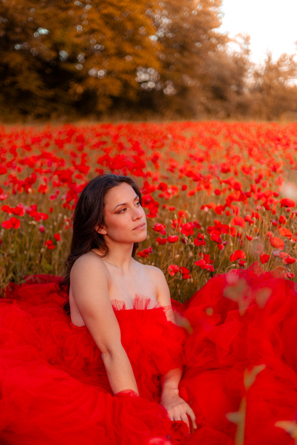 Mais un an plus tard, alors que les champs de fleurs sauvages arboraient leur plus beau rouge, et que j’étais enfin devenue artiste à plein temps depuis plusieurs mois, je me suis rappelé de cette idée et n’avait plus qu’une envie : enfin donner vie à ce tableau !