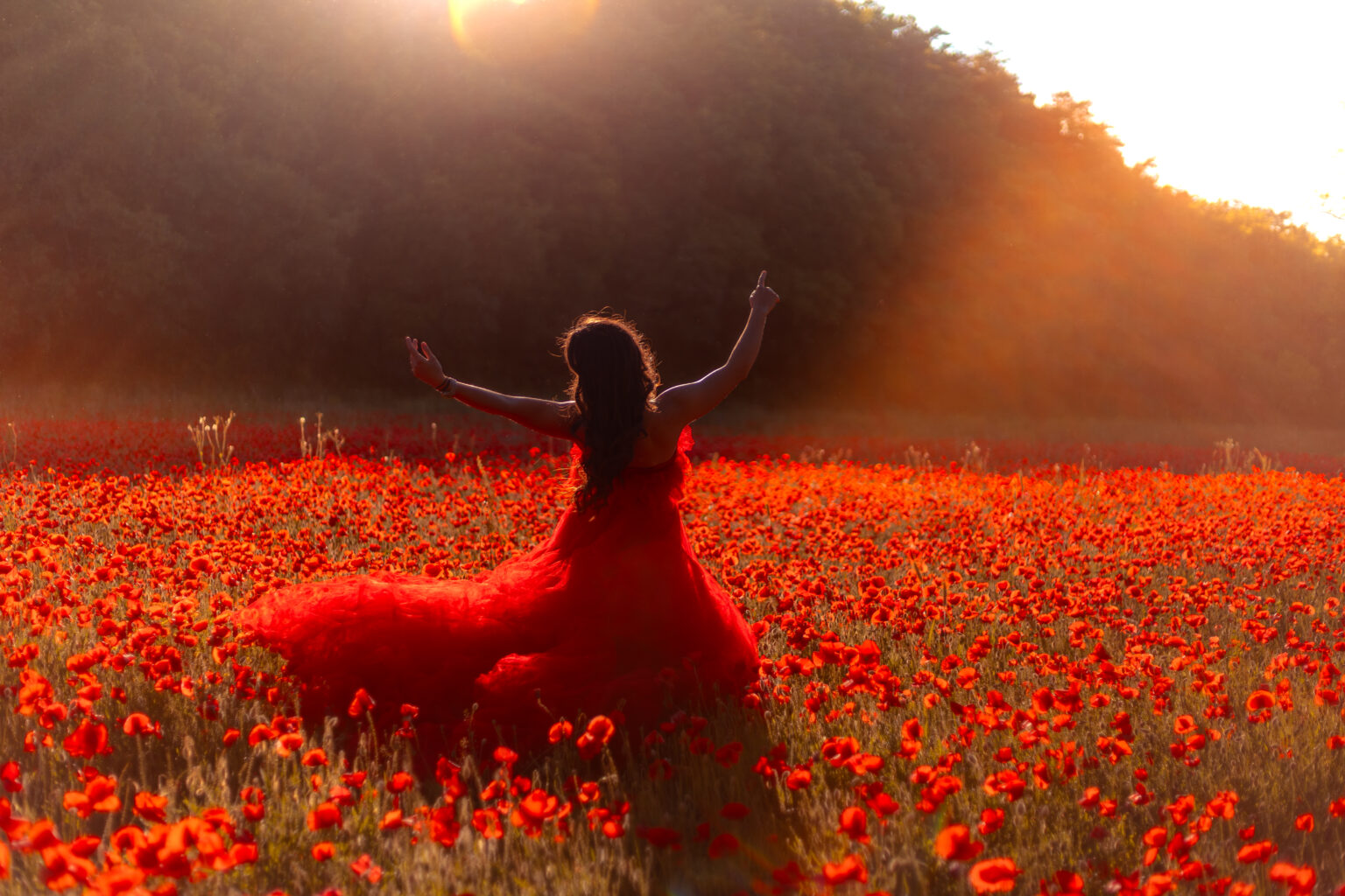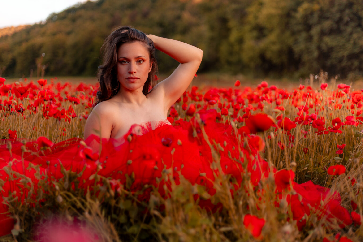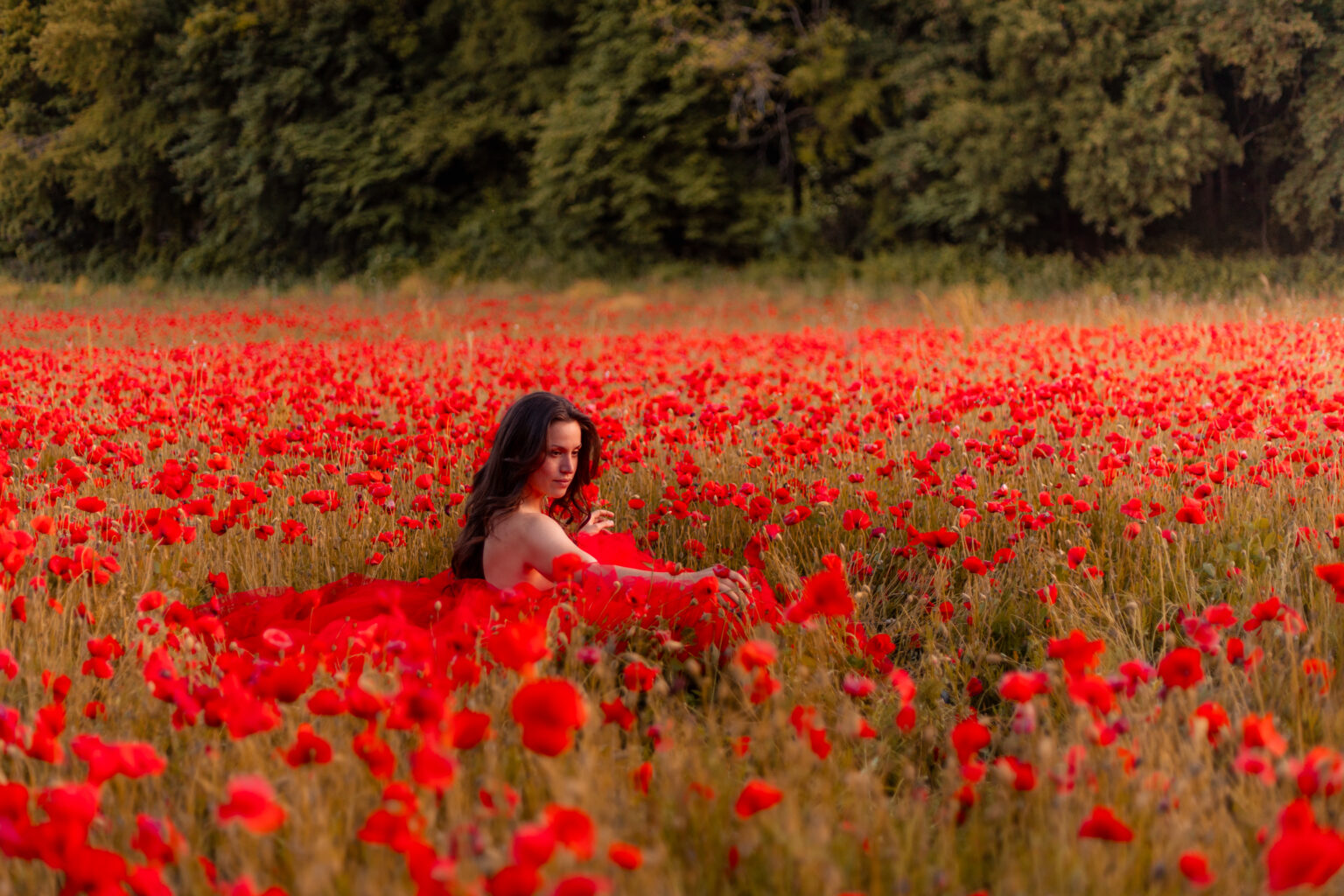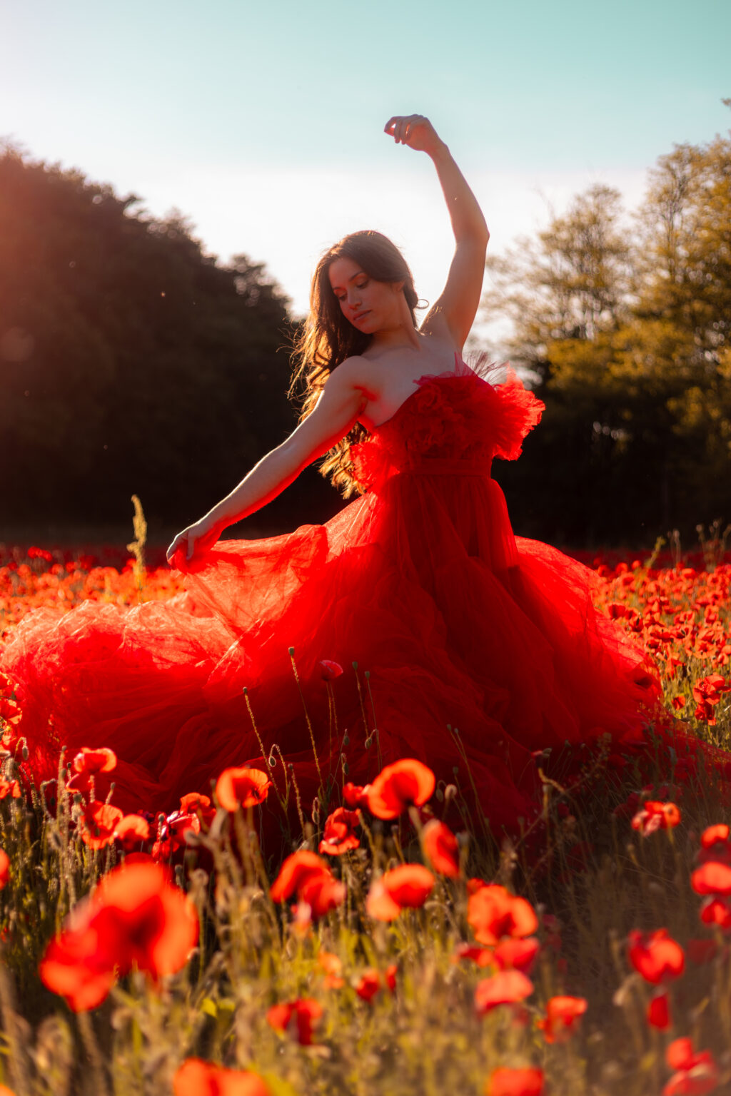 Mais un an plus tard, alors que les champs de fleurs sauvages arboraient leur plus beau rouge, et que j’étais enfin devenue artiste à plein temps depuis plusieurs mois, je me suis rappelé de cette idée et n’avait plus qu’une envie : enfin donner vie à ce tableau !