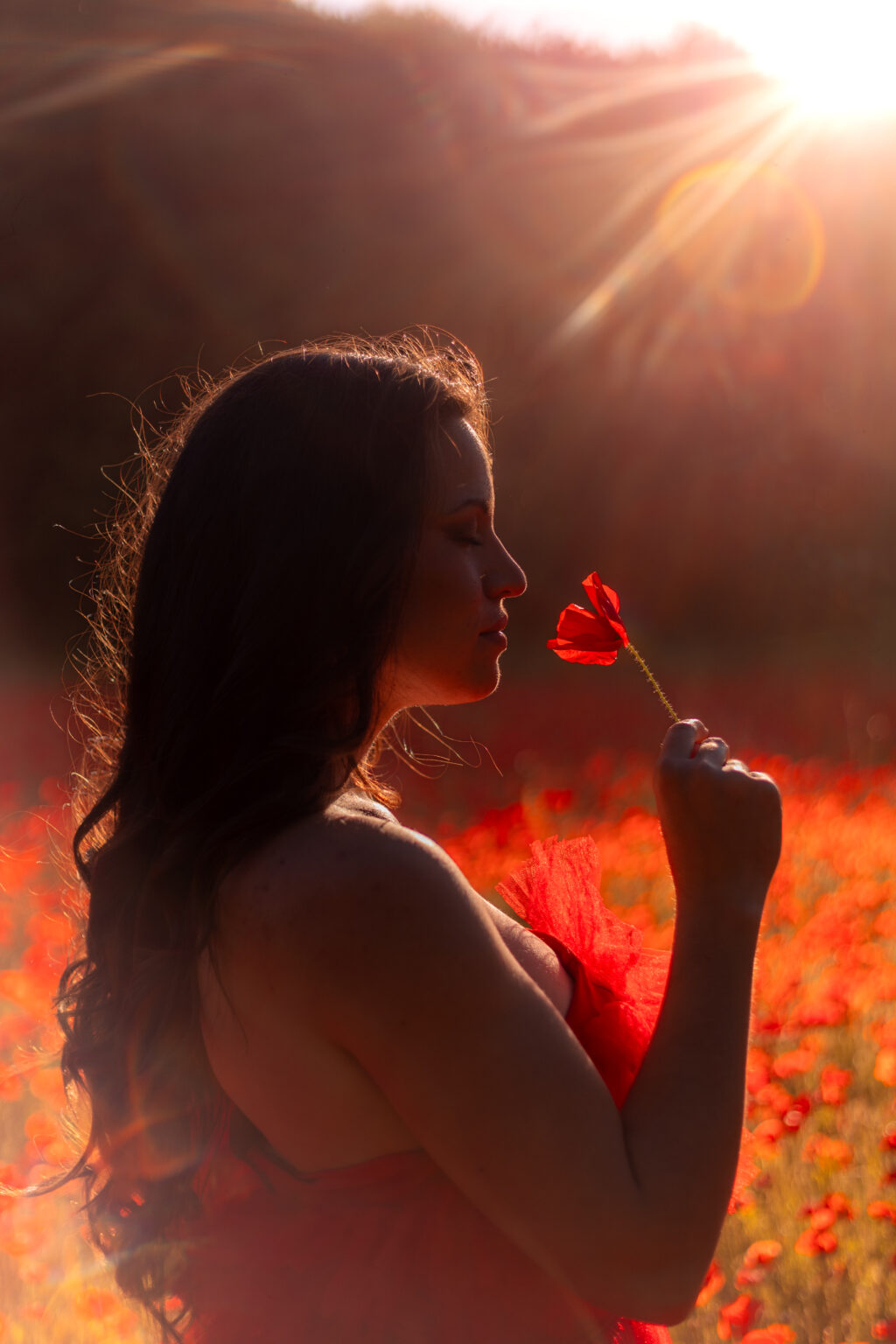 Arrivée sur les lieux, nous n’aurions pas pu rêver mieux : la lumière du soleil couchant était incroyable et la prairie ressemblait à une véritable mer de fleurs.