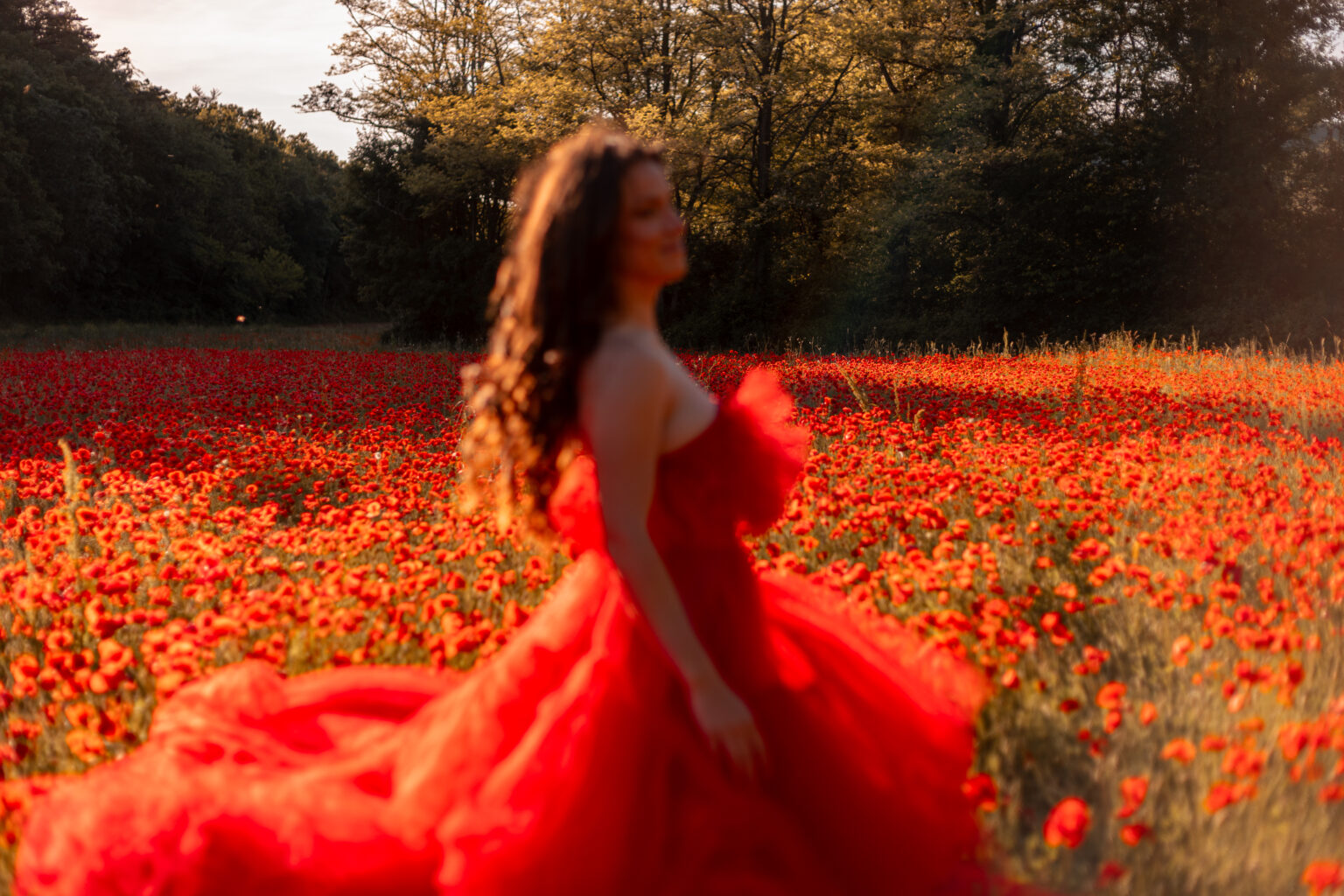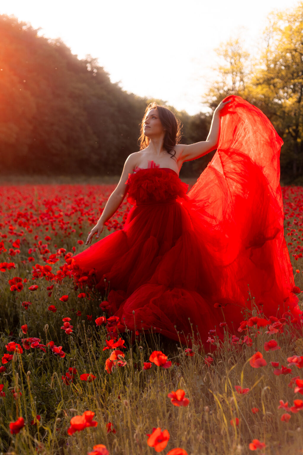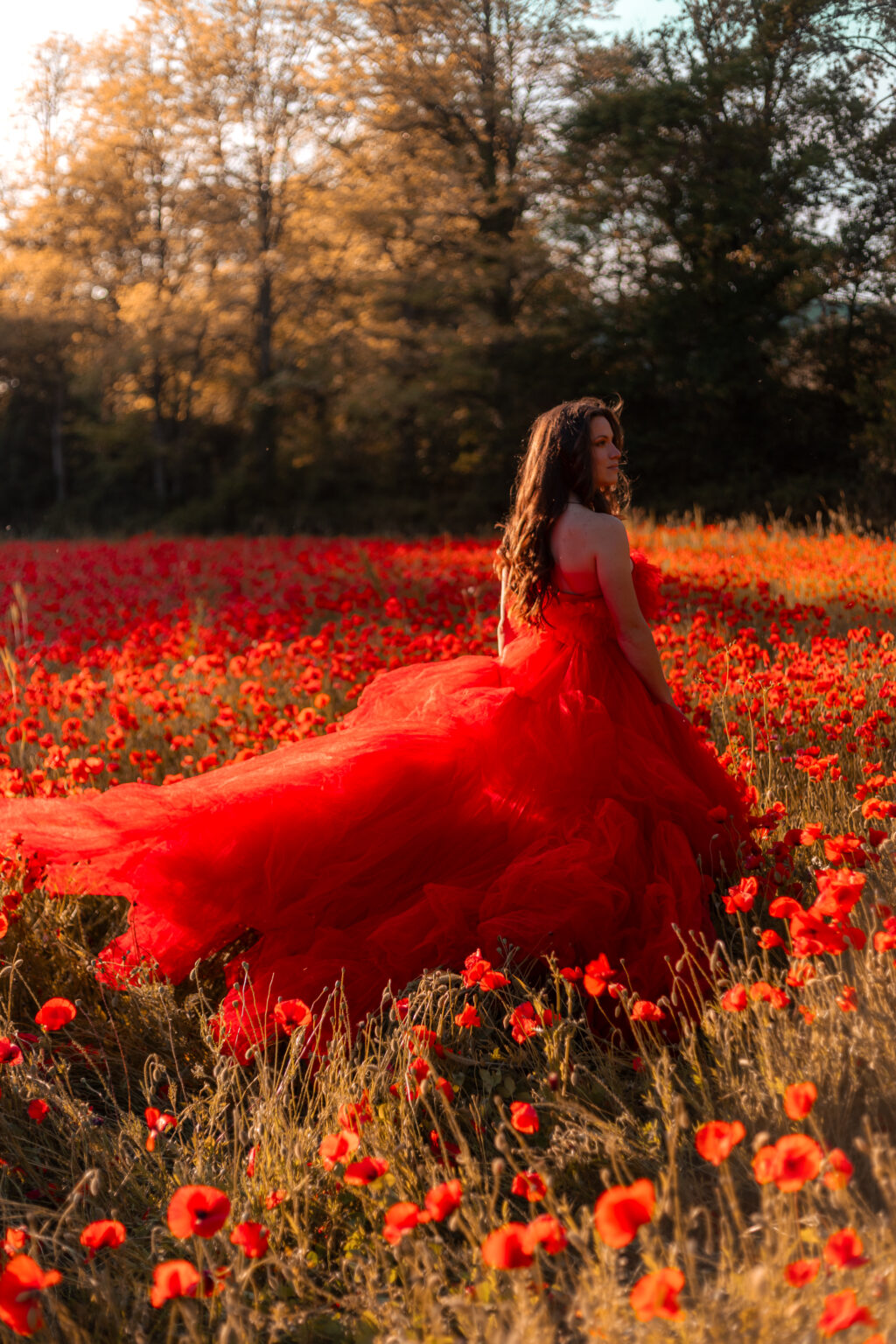 Et alors que ce n’était que sa deuxième séance photo, j’ai été impressionnée par les propositions de ma modèle, qui s’est sentie parfaitement à l’aise. Dans sa grande robe de princesse, elle s’est rapidement prise au jeu. Nous avons passé un super moment toutes les deux, à danser, rire, et courir dans cette prairie isolée. Heureusement, sous sa grande robe, elle avait enfilé ses meilleures chaussures de rando !