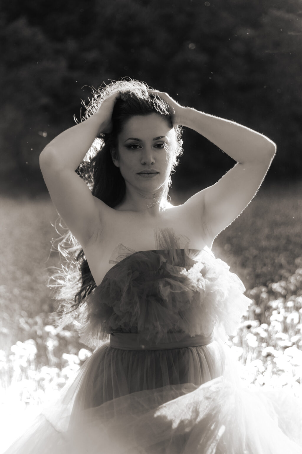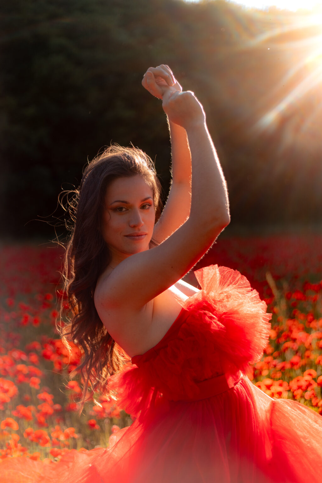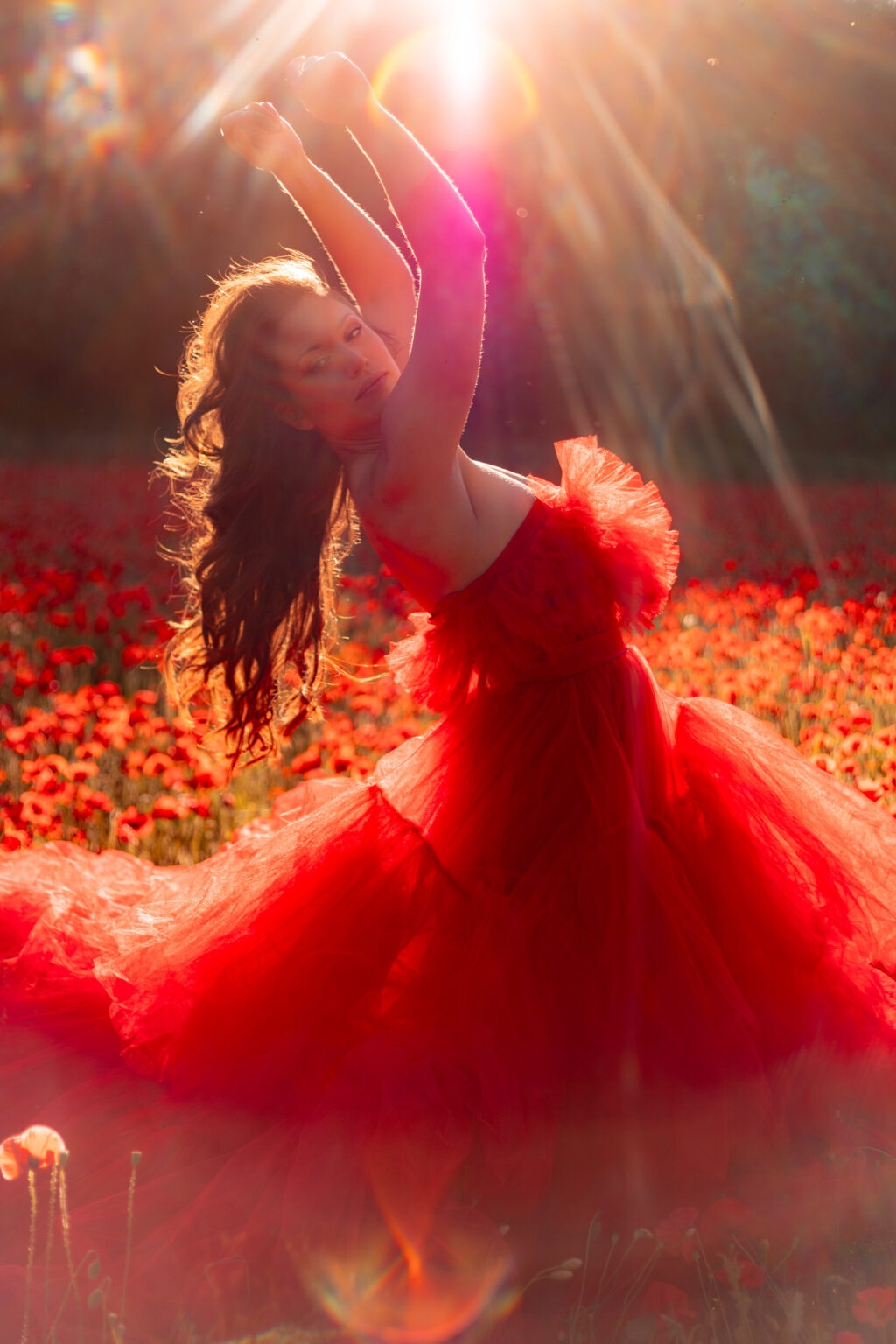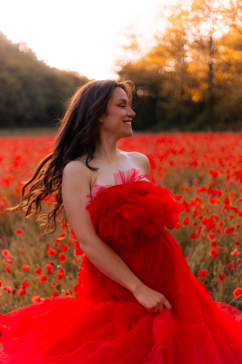 Et alors que ce n’était que sa deuxième séance photo, j’ai été impressionnée par les propositions de ma modèle, qui s’est sentie parfaitement à l’aise. Dans sa grande robe de princesse, elle s’est rapidement prise au jeu. Nous avons passé un super moment toutes les deux, à danser, rire, et courir dans cette prairie isolée. Heureusement, sous sa grande robe, elle avait enfilé ses meilleures chaussures de rando !