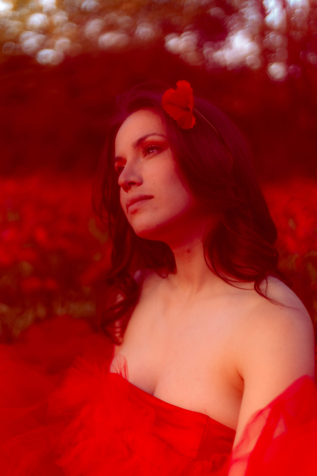 Il y a un an de cela, alors que j’envisageais à peine de devenir photographe, j’ai eu la chance de rencontrer la photographe lyonnaise Alix Charvin lors d’une exposition / vide dressing. Ce jour là, plusieurs artistes très inspirantes étaient présentes et m’ont beaucoup aidé à dessiner mon rêve de devenir photographe. Alix se séparait de cette gigantesque robe rouge, et je me suis jetée sur l’occasion pour l’acheter !